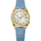 3-hand silver white dial with gold-tone applied and faceted hour markers.