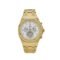 This Royal Oak Tourbillon Chronograph is crafted in a 44mm 18k yellow gold case. The silver tappiserie dial features hour and minute counters, and luminous hour markers. The watch comes on a 18k Yellow Gold bracelet with folding clasp.