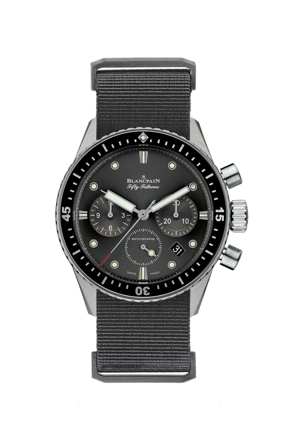 Blancpain Bathyscaphe Chronographe Flyback 5200 1110 NABA The Blancpain Bathyscaphe Chronographe Flyback 5200 1110 NABA is a men’s watch that features a 43mm steel case and is powered by the Blancpain Caliber F385 automatic movement. The watch comes with a NATO strap and pin buckle. It has a water resistance rating of up to 30 bar, which is equivalent to a depth of approximately 300 meters or 1000 feet. The Bathyscaphe Chronographe Flyback is a high-performance dive watch that is designed to meet the needs of professional divers and adventurers. The watch features a chronograph function with a flyback mechanism, allowing the wearer to easily time and record multiple events with precise accuracy. The Blancpain Caliber F385 movement is a self-winding movement that features a 50-hour power reserve and a vertical clutch system for improved precision and stability. The NATO strap is a popular choice for divers and outdoor enthusiasts because it is strong, durable, and water-resistant. The pin buckle is easy to use and secure, ensuring that the watch stays in place during even the most intense activities. The steel case is a classic choice for dive watches, offering a strong and durable option that can handle the demands of professional use. The combination of steel and NATO strap gives the watch a sporty and functional appearance, perfect for those who want a watch that can handle both daily wear and adventurous activities. Overall, the Blancpain Bathyscaphe Chronographe Flyback 5200 1110 NABA is a high-quality, stylish, and functional watch that is perfect for men who love adventure and the great outdoors. Its impressive technical specifications, durable materials, and precision performance make it a top choice for serious watch collectors and professionals alike.