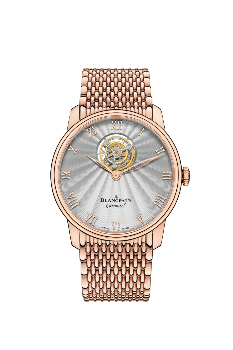 Blancpain Villeret Carrousel Volant Une Minute 66228 3642 MMB The Blancpain Villeret Carrousel Volant Une Minute 66228 3642 MMB Men’s watch is a highly sophisticated and luxurious timepiece that combines classic design with advanced mechanical technology. The watch features a 40 mm Red Gold case that gives it an elegant and refined appearance. It is powered by the Blancpain 228 caliber, a hand-wound mechanical movement that provides precise timekeeping and a power reserve of 120 hours. The watch also features a carrousel volant une minute complication, which is a type of rotating escapement that helps to improve accuracy and stability. The watch is fitted with a Mille Mailles bracelet that is designed for maximum comfort and durability. The bracelet is complemented by a folding clasp that makes it easy to adjust to the wearer’s wrist size. The watch has a water resistance rating of 3 bar, which means that it is suitable for everyday wear and is splash-resistant. However, it should not be worn while swimming or diving. Overall, the Blancpain Villeret Carrousel Volant Une Minute 66228 3642 MMB Men’s watch is a highly advanced and sophisticated timepiece that is designed for watch enthusiasts who appreciate the finest mechanical technology and a luxurious appearance. It is a great choice for those who desire a watch that combines classic style with cutting-edge technology and luxurious design.