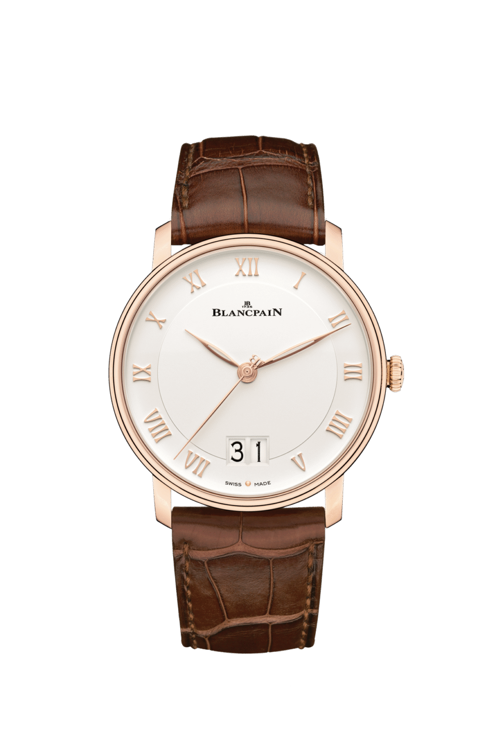 Blancpain Villeret Grande Date 6669 3642 55B The Blancpain Villeret Grande Date 6669 3642 55B Men’s watch is a luxurious timepiece that boasts a 40mm case made of elegant red gold, giving it a timeless and sophisticated look. It is powered by the Blancpain Calibre 6950, a self-winding mechanical movement known for its precision and reliability. One of the key features of this watch is its grande date function, which displays the date in large numerals at the 6 o’clock position, making it easy to read at a glance. The dial also features Roman numeral hour markers and elegant leaf-shaped hands, adding to its classic and refined design. The watch comes with a comfortable leather strap and a folding clasp that ensures a secure and comfortable fit on the wrist. It has a water resistance rating of 3 bar, making it suitable for everyday wear and able to withstand water splashes and rain. Overall, the Blancpain Villeret Grande Date 6669 3642 55B Men’s watch is a stylish and sophisticated timepiece that combines timeless elegance with practicality. Its red gold case, grande date function, and classic dial design make it a popular choice among watch enthusiasts who appreciate the highest quality craftsmanship and attention to detail.