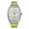 Vanguard Case. Stainless Steel. Hand polished. Water resistant up to 30 meters. Hand set with 300 brilliant-cut diamonds (3.78 carats). Rhodium plating. Width: 32 mm x Length: 42.3 mm x Thickness: 9.9 mm. Green inserts on both sides of the case. Sapphire crystal Hours, Minutes Winding shaft with 2 positions: 1.Marche. 2.Time setting MVT FM 1321-QZ. Quartz movement. Battery life of about 4 years. 27 Components. 7 Jewels. Width: 9.00 mm. Length: 13.20 mm. Thickness: 2.10 mm . Quartz frequency set at 32,768 alternations per hour Cotes de Geneve and circular graining on the casing ring . 24k Gold finish on the written engravings and rhodium plating Hand sewn alligator strap Stainless Steel buckle. Hand set with 12 brilliant-cut diamonds (0.21 carats). Hand polished. Rhodium plating Stamped guilloche with sun pattern. 20 Layers of translucent lacquer.