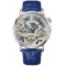 Featuring our proprietary Accutron movement powered by electrostatic energy – a historical advancement in timekeeping and the first of its kind -, the new Spaceview Evolution collection is a true design evolution of the original Spaceview 2020. While utilizing the same iconic and distinctive case of the Spaceview 2020, the new Spaceview Evolution features an updated orientation of the movement by 30 degrees to give the watches an entirely new look – the turbines are tilted, and crown is positioned at two o’clock. New bridgework detail is also incorporated with fine knurled finishing along with blue and black contrast screws for a pop of color. This style features a smoke grey and silver-tone open-work dial with metal dial rings on which the light green super luminous markers are set, metallic blue hour and minute hands with super luminova center and silver tone second hand. It comes on a shiny blue genuine American alligator strap.